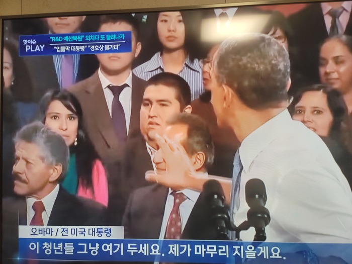 그런데 이전에 미국에서 오바마 전 대통령이 연설을 할 때 비슷한 상황이 벌여졌던 적이 있었다. '이민 개혁안'에 대한 연설을 하는 도중 어떤 청년이 이에 대한 자신의 의견을 외쳤다. 오바마 전 대통령은 그를 막으려 하는 경호원들에게 제재하지 말라고 했고 그의 말을 끝까지 경청을 했다. 그리고 어떻게 그 문제를 해결해 나갈 수 있는지 방안들을 구체적으로 얘기해 준다.